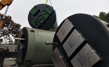 從外部看,江蘇一體化提升泵站像一個大型的圓圓的筒體,因?yàn)楝F(xiàn)在大多采用玻璃鋼做筒體材料,所以大多呈現(xiàn)淺綠色。當(dāng)然這可不是簡單的水桶,里面有很多設(shè)備。