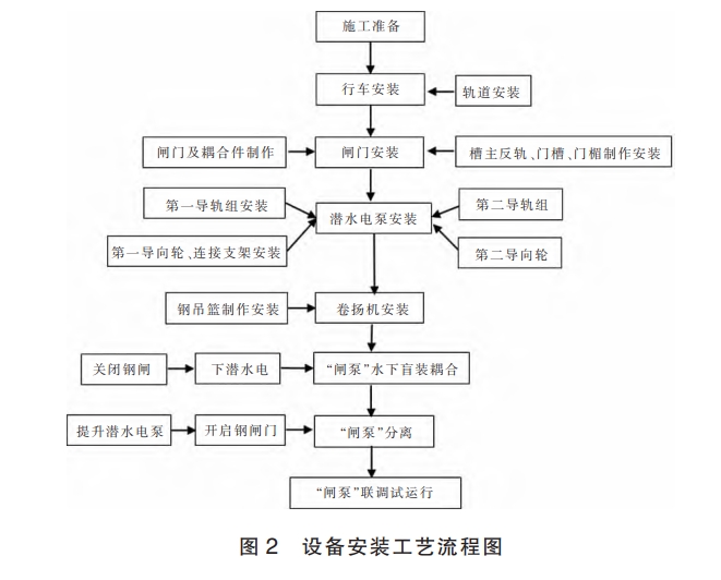 項目完成土建工程施工后,開始泵站金屬結構和機電設備的安裝工作。設備安裝工藝流程見圖 2: