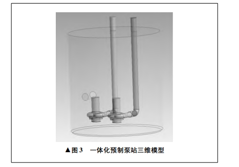 采用 SolidWorks 三維軟件對(duì)一體化預(yù)制泵站過流區(qū)域進(jìn)行三維模型建造,三維模型如圖3所示。